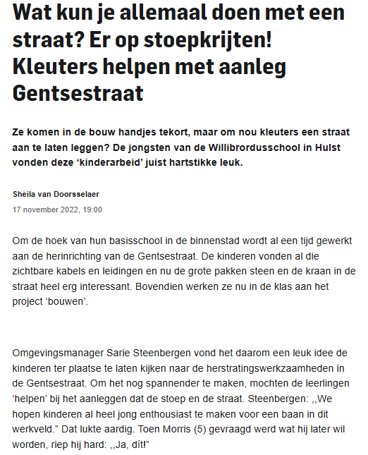 Als omgevingsmanager ben ik gedurende projecten in het openbaar gebied de schakel tussen opdrachtgevers (gemeenten, aannemers, netbeheerders) en de (directe) omgeving. Door belanghebbenden tijdig en volledig van heldere informatie te voorzien en vragen vlot te beantwoorden, weet de omgeving wat ze kunnen verwachten tijdens, vaak ingrijpende en ‘onzichtbare’, werkzaamheden. Op deze manier is de uitvoering van het werk voor zowel de omgeving als opdrachtgever en aannemer een stuk aangenamer!